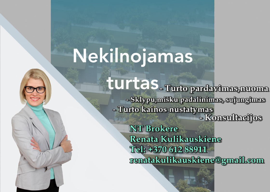NT brokeris turintis ilgametę patirtį nekilnojamojo turto pirkime ir pardavime, pagal jūsų poreikius suras jums nekilnojamąjį turtą, parduos arba ji išnuomos.